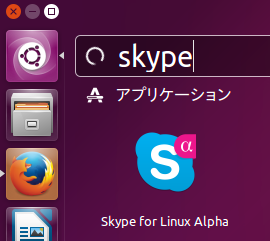 インストールが完了すると、Dashから起動できます。「skype」で検索してみてください。「Skype for Linux Alpha」アイコンが表示されたら、それをダブルクリックします。